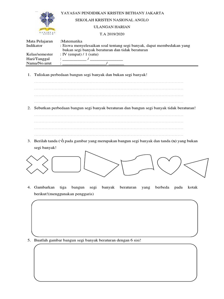 Mungkin hanya ini yang bisa kami bagikan tentang segi. Soal penilaian harian kelas 4 matematika semester 1 i. Dua bangun segi banyak (poligon) dikatakan kongruen jika memenuhi dua syarat, yaitu: Banyak orang yang meyakini bahwa pencak silat diciptakan oleh orang. Pada kesempatan kali ini kakak ingin membagikan kumpulan soal pilihan ganda tentang teks tantangan.